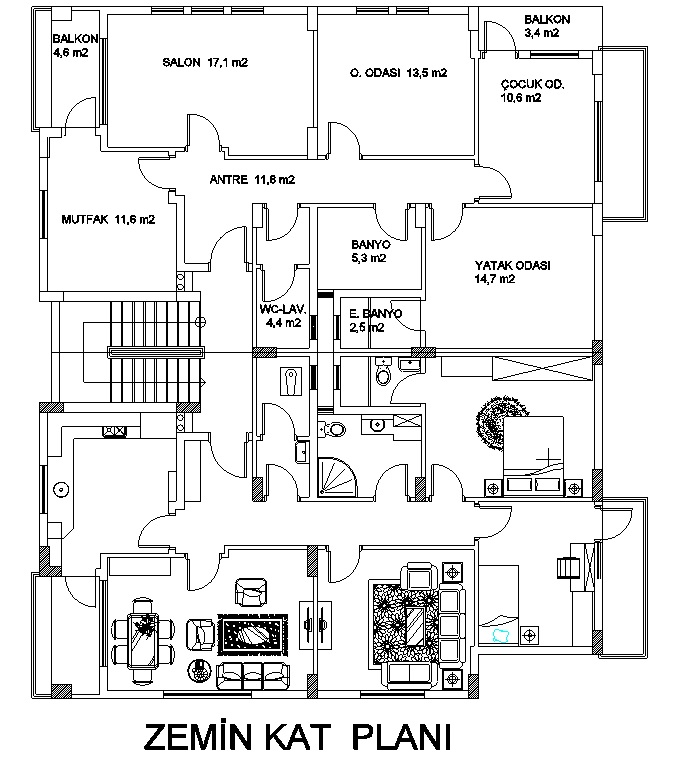 5. Her odaya mobilya yerleşim ve hareket alanları dikkate alınarak yeterli sayıda priz konulmuştur.